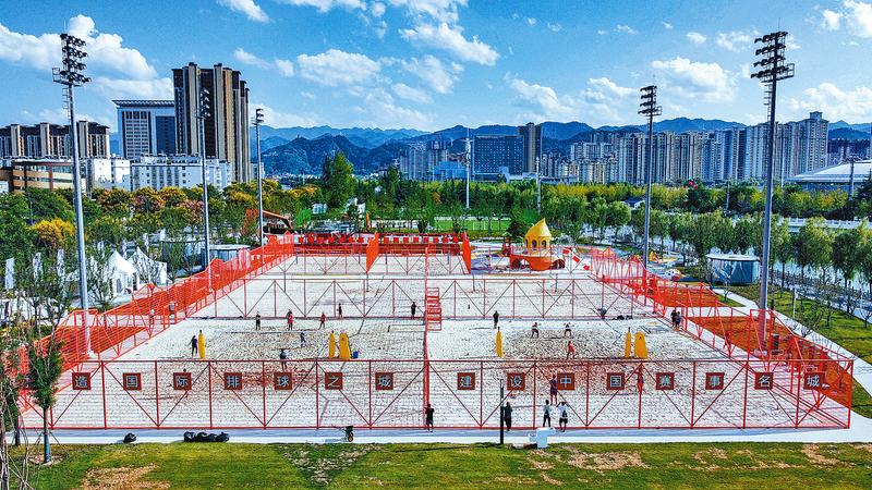 8月20日,中国沙滩排球青年队和新西兰沙滩排球U19国家队在商州群众运动公园沙排训练场地进行适应性训练。该场地毗邻丹江,环境优美,是2024国际排联沙滩排球U19世界锦标赛副场地。