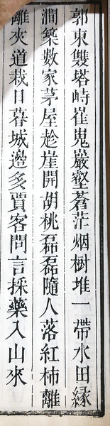 诗的大意是说,商州城东边东龙山上的两座古塔高耸入云、气势磅礴,远处的山峦溪谷连绵起伏,一望无际,丛林之中云烟缭绕,宛若仙境。山涧沿岸是大片的稻田,依水而筑,山崖脚下有几间茅屋,星星点点。随处可见的核桃树上果实累累,挂满了枝头,熟透的核桃随人掉落,道路两旁遍植柿树,红彤彤的柿子压弯了枝头。已是日落时分,在郊外碰到很多商人,询问之后才知道原来他们是进山采药才归来。