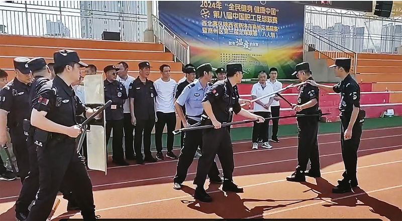 8月28日,商州区第十二幼儿园联合商洛市公安局高新分局巡特警大队共同举办安保人员业务技能提升培训活动,培训内容涵盖了安全防范知识、应急处置流程、反恐防暴技能等方面。 (本报记者 王孝竹 摄)