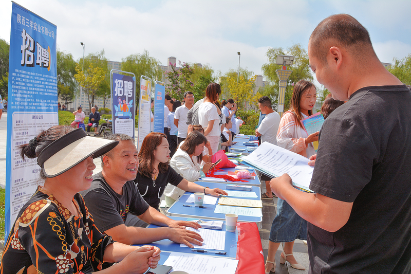 8月21日,洛南县举行2024年“百日千万招聘专项行动”暨苏陕劳务协作现场招聘活动,县内外40多家用工企业带来2000多个就业岗位供求职者选择。活动当天,发放宣传资料1100多份,700多名群众现场咨询政策或参与应聘,现场初步达成就业意向160多人。 (本报通讯员 刘卫锋 摄)
