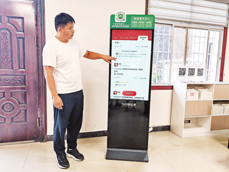 8月31日,商南县清油河镇清油河社区党总支书记张驰在“村级服务平台”上查看群众留言。8月12日18时40分,商南县清油河镇清油河社区居民李朝辉在“智慧社区”平台“居民说事”板块留言:“社区四组杨保军和李胜清两家房子中间,有一个脸盆大的蜂包,已有人被蜇了,望尽快处理,以免有更多人被蜇。”