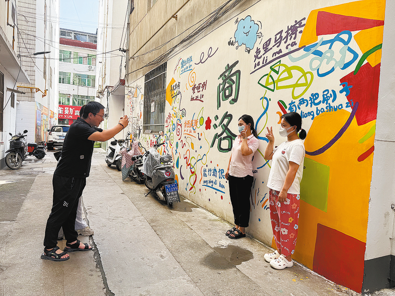 9月9日,商州区名人街睦邻巷的创意手绘墙吸引了大批市民群众前来拍照打卡。据了解,名人街社区居委会自筹11万多元,用时3个多月完成了3000平方米左右的手绘墙面,内容涵盖体育赛事、商洛八景等主题。