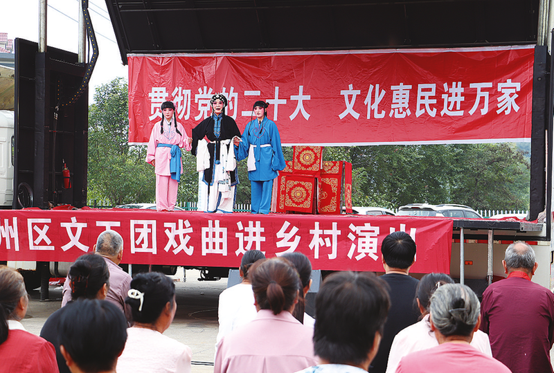 近日,由商州区文化和旅游局主办、商州区文工团承办的戏曲进乡村演出在陈塬街道上河村精彩上演,为当地村民带来了为期两天的文化盛宴。此次活动不仅丰富了村民的精神文化生活,同时通过表彰先进典型,为上河村的发展注入新活力。 (本报记者 张 矛 摄)