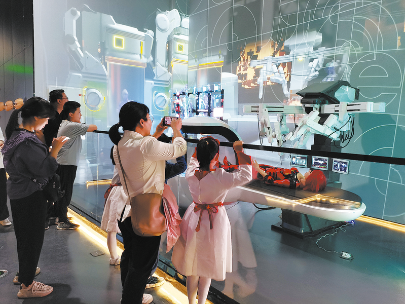9月28日,商洛未来科技馆游人如织,元宇宙科学技术、AI人工智能技术、仿真人形机器人技术等前沿科技的应用吸引众多小朋友前来互动打卡。 (本报记者 刘 媛 摄)