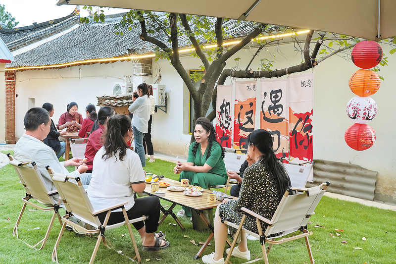 国庆假期,游客在丹凤县竹林关镇“桃源里居”田园度假小屋享受诗酒茶香的田园生活。据了解,今年以来竹林关镇积极盘活农村闲置农房,将六户闲置农房集中打造成集吃、住、娱于一体的田园度假小屋,并引入企业进行专业化运行,以“村企联营”模式探索发展新路径。(本报记者米子扬摄)