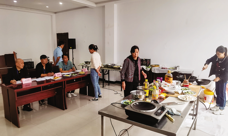 近日,丹凤县人社局在竹林关镇丹水社区组织开展烹饪技能培训,帮助搬迁群众掌握一技之长,扩大就业门路。 (本报通讯员 周 飞 摄)