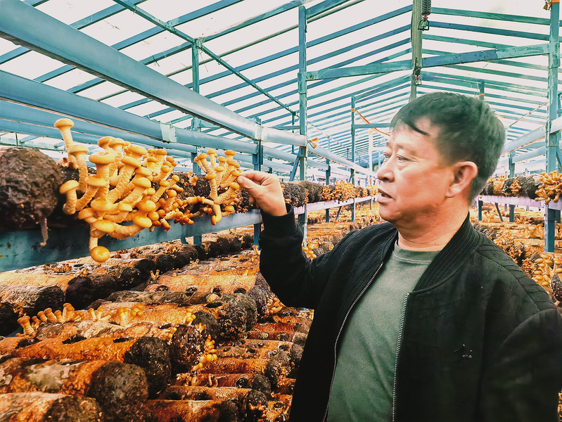 10月7日,在山阳县板岩镇耿村滑子菇大棚内,成熟的滑子菇等待采摘。据了解,滑子菇大棚园区占地98亩,今年种植滑子菇43万袋,带动当地16名务工群众人均增收3000元以上。 (本报见习记者 杨若阳 摄)