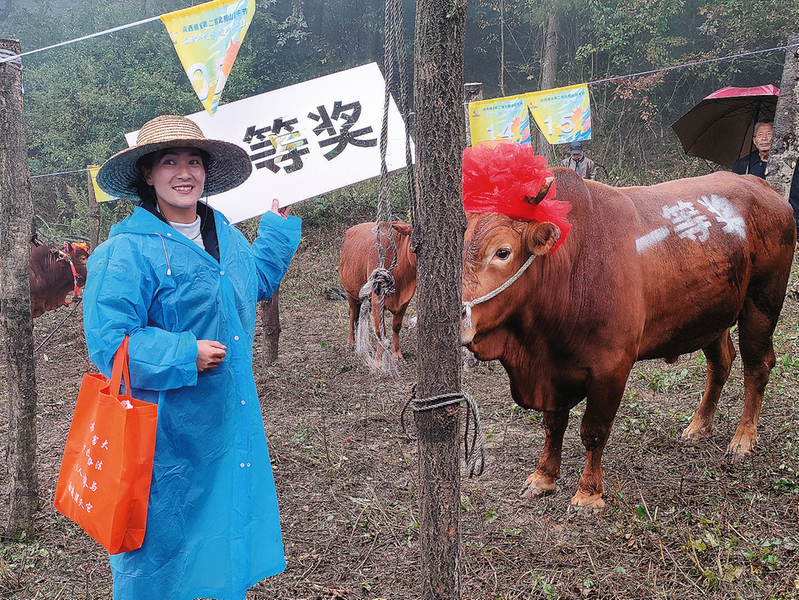 “今天能拿奖真的很高兴,我家养的这头牛是本地的品种,俗称黄牛。”本次获得一等奖的当地养殖大户朱敏告诉记者,她家里养了80多头牛,多亏政策扶持和镇上农综站干部的技术指导,牛儿才能养得这么好。