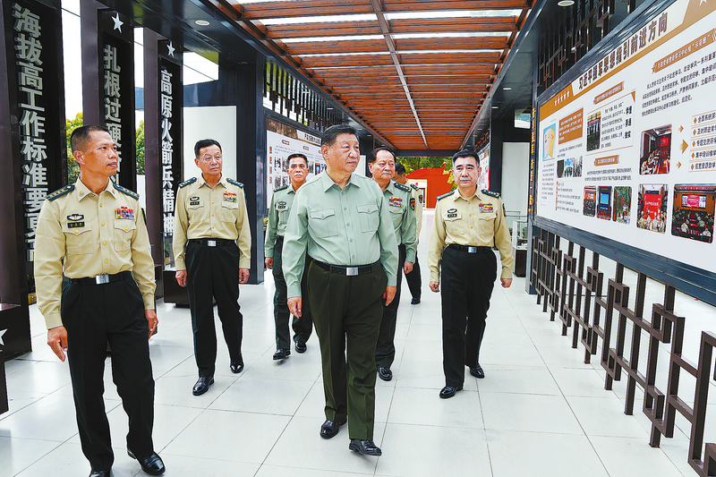 10月17日,中共中央总书记、国家主席、中央军委主席习近平到火箭军某旅视察。这是习近平察看该旅军史长廊。 (新华社记者 李 刚 摄)