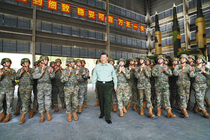 10月17日,中共中央总书记、国家主席、中央军委主席习近平到火箭军某旅视察。这是习近平在察看装备操作训练情况时,同官兵亲切交谈。(新华社记者 李刚 摄)新华社合肥10月19日电 (记者 梅常伟)中共中央总书记、国家主席、中央军委主席习近平17日到火箭军某旅视察,强调要深入贯彻新时代强军思想,贯彻新时代军事战略方针,把握战略导弹部队建设和作战运用特点规律,坚持政治引领,强化使命担当,埋头苦干实干,推进部队建设高质量发展,提升战略威慑和实战能力,坚决完成党和人民赋予的各项任务。