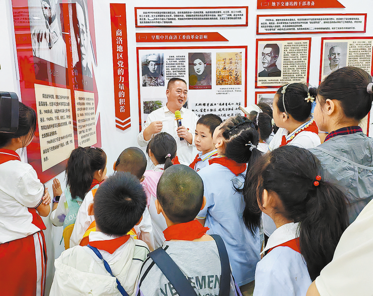 “在中原突围时,郑位三一行秘密翻山越岭赶到商南,当时战况紧急,他们隐蔽在一片松树林下,能清晰听到敌人的抓捕声,那时蒲云还抱着孩子,孩子一天没有吃东西了,饿得不行,不停地哭闹。担心暴露同志,情急之下,蒲云用手紧紧捂住孩子的嘴巴,由于时间过长,差点把孩子捂死。”见学生们听得认真,赵敏不失时机地总结道:“所以说,今天的美好生活来之不易,小朋友们更应珍惜现在拥有的一切,好好学习,报效祖国!”