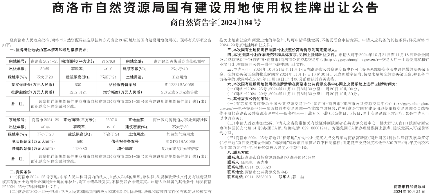 商洛市自然资源局国有建设用地使用权挂牌出让公告