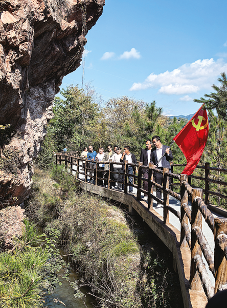 10月15日,洛南县保安镇三义村组织村“两委”、驻村工作队、优秀党员代表等10多人,怀着崇敬的心情走进洛南县红色教育基地——唐澍烈士纪念馆,接受红色教育。随后,他们又走进洛惠渠,开展“吃水不忘修渠人、建功立业新时代”主题教育,弘扬洛惠渠宝贵传统,增强党员干部干事创业精气神。 (本报通讯员 赵战峰 摄)