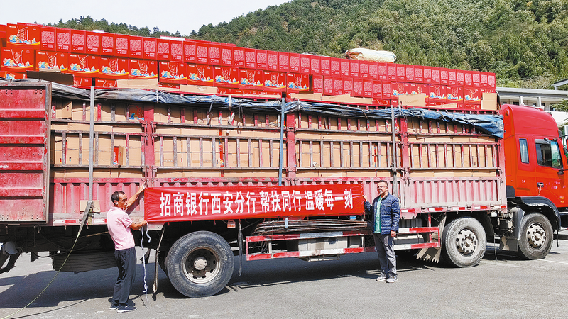 近日,招商银行西安分行在丹凤县蔡川镇留仙坪村采购价值40万元的核桃、木耳、香菇、粉条等农产品,帮助当地群众销售农产品,增加群众收入,以帮销促致富。 (本报通讯员 姚 芳 摄)