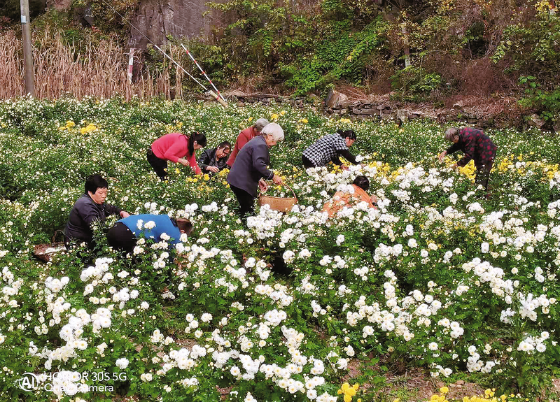 群众采摘金丝菊和杭白菊