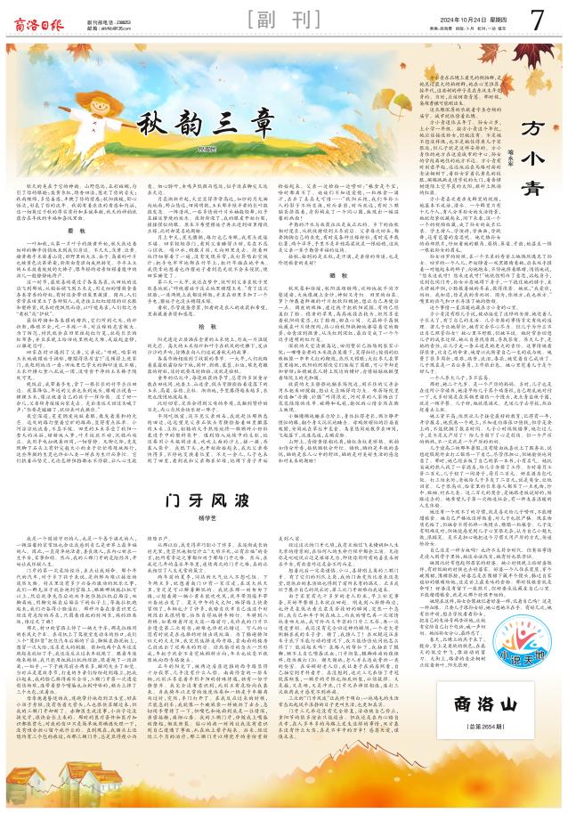 午间吃饭前,还不见父亲回来,我就赶往那熟悉的田边,远远望见父亲正低头弯腰捡拾着田里撒落的玉米、豆粒,粗糙的大手熟练地将一颗颗碎小籽粒装进手中的塑料袋中。遇到陷入地缝中的豆粒,他还要用小木棍剜出来,吹吹上面的沙土,搓一搓,再装入袋中。我低下头,也开始捡拾起来,我比父亲要快得多,不停地变换着位置。不大一会儿,儿子也来到了田里,看到我和父亲都在忙碌,他蹲下身子开始捡拾起来。父亲一边捡拾一边唠叨:“粮食是个宝,啥时都离不了。娃娃们不知道爱惜,一粒粮食一滴汗,丢弃了真真太可惜……”秋阳正艳,我们爷孙三人的影子不断变换,时而亲密,时而疏远,有时三颗脑袋挤挨着,身影构成了一个同心圆,映现出一幅温馨的画面!