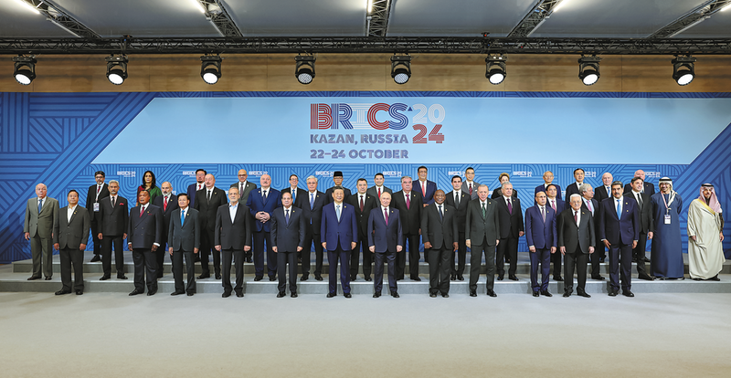 当地时间10月24日上午,国家主席习近平在喀山会展中心出席“金砖+”领导人对话会并发表题为《汇聚“全球南方”磅礴力量 共同推动构建人类命运共同体》的重要讲话。这是出席对话会的金砖国家及嘉宾国领导人或代表、国际组织负责人集体合影。 (新华社记者 姚大伟 摄)新华社俄罗斯喀山10月24日电 (记者 韩墨 刘恺)当地时间10月24日上午,国家主席习近平在喀山会展中心出席“金砖+”领导人对话会并发表题为《汇聚“全球南方”磅礴力量 共同推动构建人类命运共同体》的重要讲话。