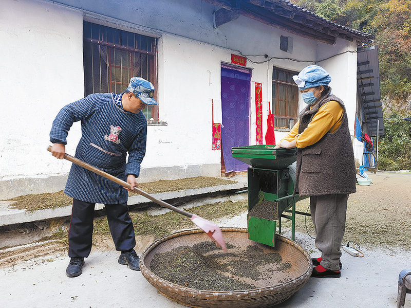 10月23日,在丹凤县竹林关镇阳河村陈苏珍家院子里,夫妻二人正在除去飞鼠粪便中的杂质。据了解,陈苏珍从2022年开始养殖飞鼠,共计养殖飞鼠300只,靠着养殖飞鼠陈苏珍家年均收入四五万元。(本报通讯员 苏甜甜 摄)