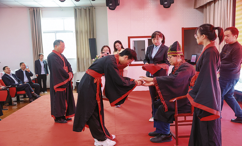 10月26日,第四军医大学第三附属医院老年病科原主任、西安大兴医院老年病医院院长、商洛金菊康复医院名誉院长刘吉祥商洛收徒拜师仪式在陕西金菊康养集团举行。据了解,师承相传是中医药人才培养的重要方式,也是助力商洛中医发展的有力推动。 (本报见习记者 杨 康 摄)