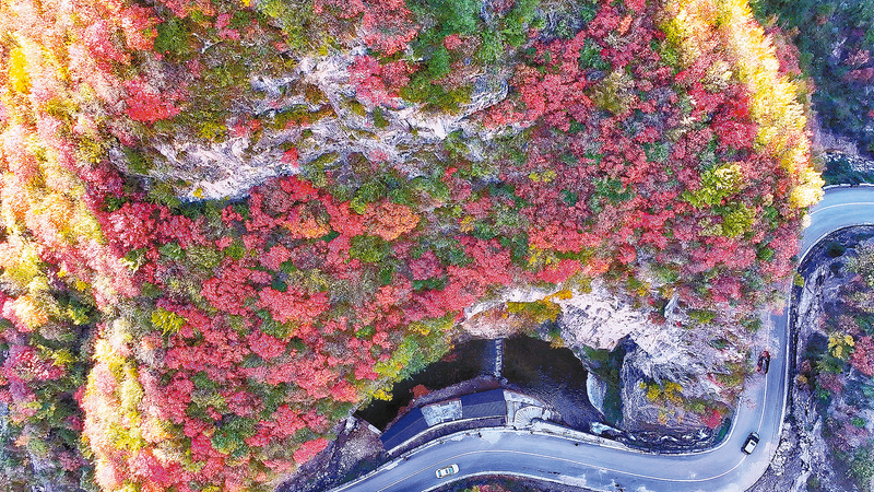 位于商州区牧护关镇的秦岭峡口红叶迎来最佳观赏期