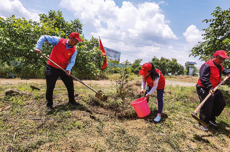 王丹军(左一)组织志愿者义务栽植红豆杉本报记者张 英