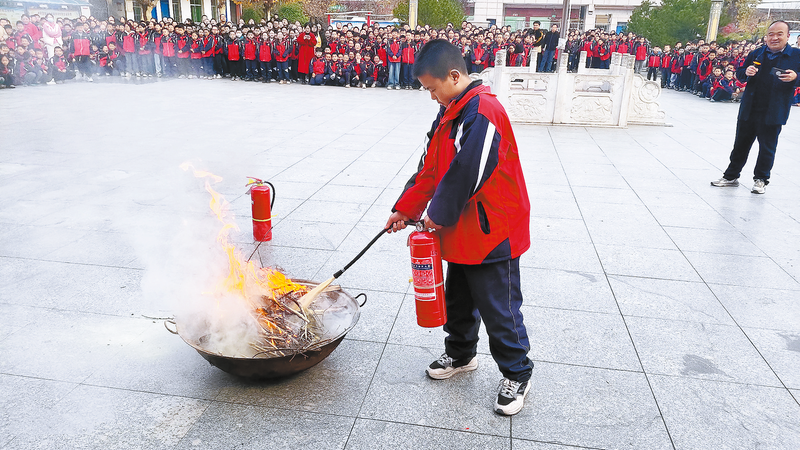 为增强全体师生的消防意识和自我保护能力,了解灭火器的性能,掌握灭火器的使用方法,11月8日,洛南县古城镇中心小学在教学楼前开展了消防演练活动,邀请师生亲身体验灭火器使用方法。