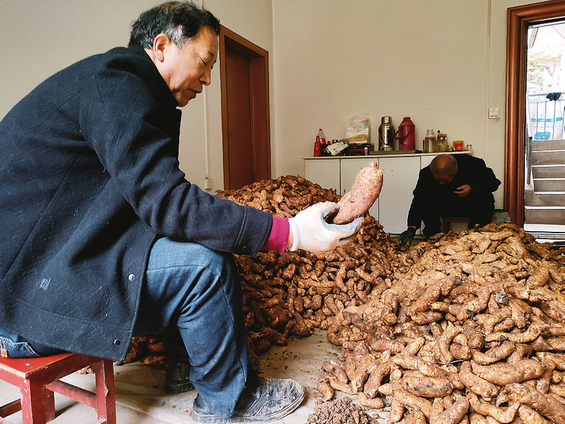 11月13日,柞水县下梁镇石瓮子社区天麻种殖户张庆录一家正在挑选天麻。据悉,张庆录是村里天麻种植大户,今年种有10多亩天麻,产量4000多公斤,年收入10多万元,带动附近10余人务工增收。