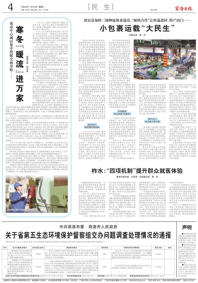 热力公司综合部主任王平说:“商洛发电厂热力公司作为商洛市区集中供暖唯一热源点,肩负着城区80多个单位和小区近两万户居民的冬季供暖任务。为此,公司早部署早行动,扎实做好各项供暖准备工作,确保‘暖流’如期进城入户,让市民温暖过冬。”