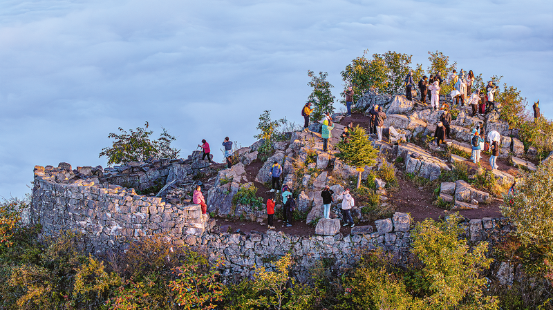 游客络绎不绝在镇安县城东北,有一座海棠山,是一处令人心驰神往的地方,因为这里有自然奇观——海棠山云海。