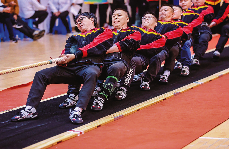 起绳,拉紧,预备……随着裁判的一声令下,选手们两脚蹬地、紧握长绳、重心下沉、身体后仰,在观众的加油呐喊声中全力以赴,爆发出浑身力量与对手展开角力。