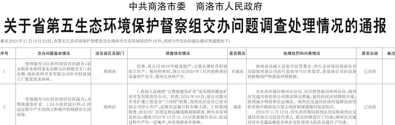 关于省第五生态环境保护督察组交办问题调查处理情况的通报
