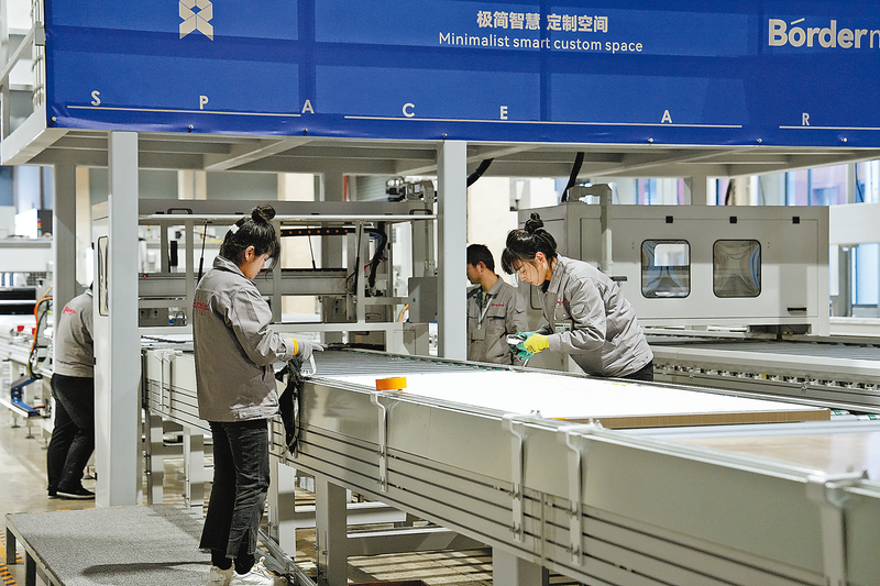 十一月二十日,在陕西众合森工实业有限公司生产车间,工人正有条不紊地忙碌着。据了解,该企业总投资三点零五亿元,业务覆盖二十多个省市,有超一千六百家经销商。二O二三年,该企业实现总产值二点四七亿元,纳税四百四十万元。近期更是将智能家居产品出口乌兹别克斯坦,走向了国际市场。 (本报记者 李小龙 摄)