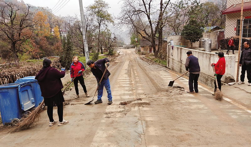 村民自发打扫道路,营造良好环境。11月12日,行走在柞水县乾佑街道梨园村,道路两旁带有柞水渔鼓元素的太阳能路灯别具一格,引人注目;干净整洁农户院里,就地取材用鹅卵石垒砌的花墙简约自然,漂亮大气;梨园村党群服务中心前,寓意携手共筑梨园村和谐文明的村规民约雕塑设计精致,格外醒目。