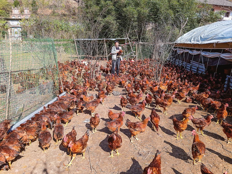今年36岁的吴龙是商州区牧护关镇泉源村八组的一名返乡创业青年,从去年开始养鸡,净赚了5万多元,今年因为玉米价格合适,养殖利润相对可观,坚定了他扩大养殖规模的信心。 (本报通讯员 陈 亮 摄)