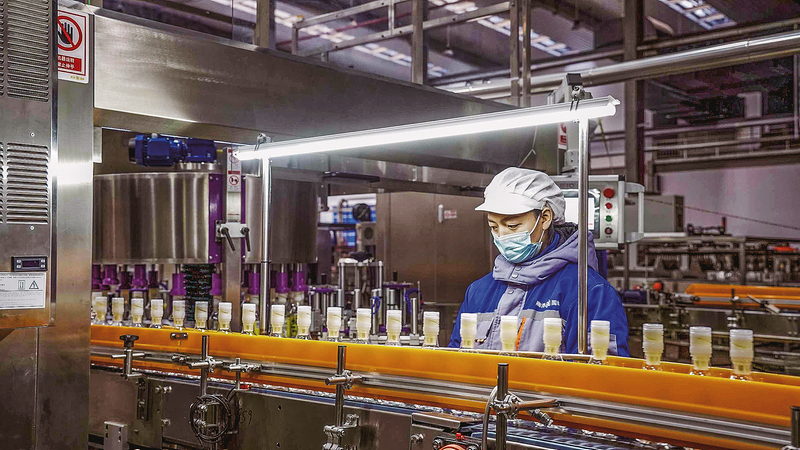 位于商洛高新区郭王村的商洛国蜂蜜水产业园总投资4.98亿元。该项目通过“一品带三业”的模式,直接带动2000余户职业蜂农和专业柠檬种植户,实现户均收入近10万元,提供直接就业岗位300余个,具有显著的经济效益和社会效益。图为12月2日,工人正在生产线检查产品包装情况。 (本报记者 张 矛 摄)