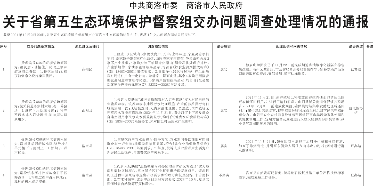 关于省第五生态环境保护督察组交办问题调查处理情况的通报