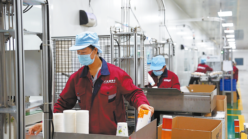 科技赋能是该项目的新突破。传统机械式传动设备被高速伺服生产设备所取代,配套视觉检测系统,实现设备分组联机,年可生产各类可降解包装、容器36亿只,预计年产值2.3亿元。