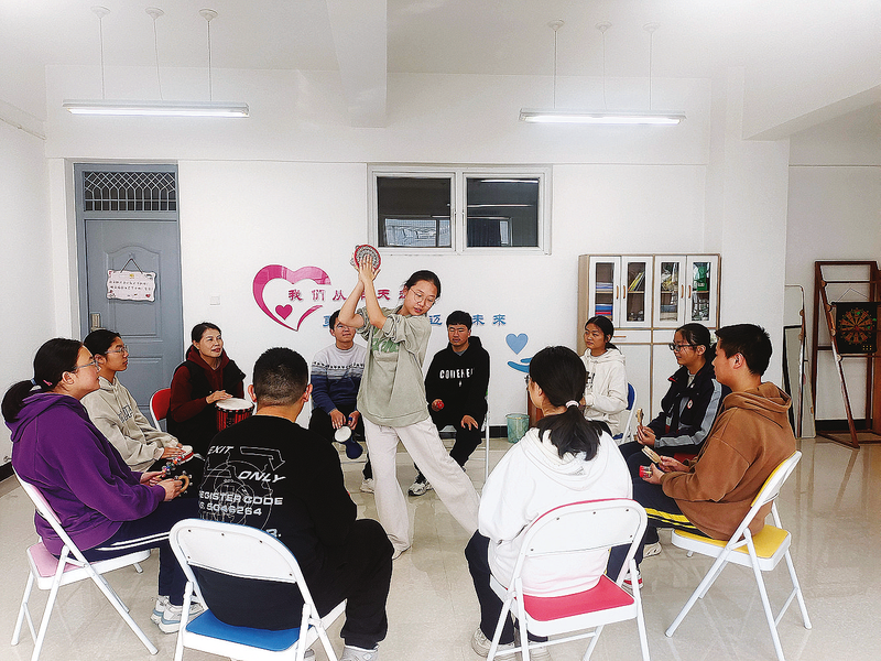 在“组团式”帮扶的推动下,山阳中学南校区建立了“心灵驿站”及苏陕协作“组团式”帮扶心理工作室。图为南京心理学老师张文芳与学生互动场景。