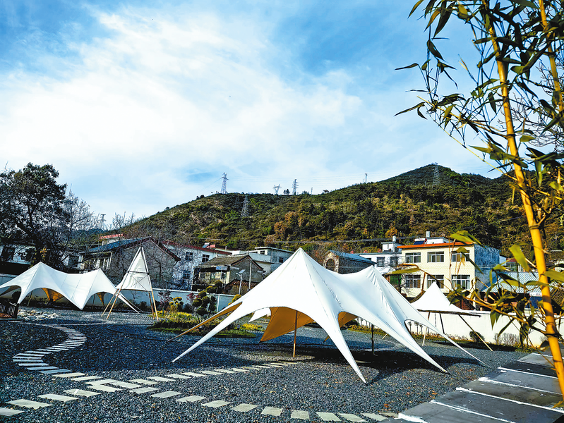 坐落在老街的武关粮站,曾是明清时期的巡检司衙门所在,偌大的场地早已闲置。指着那座巨大的废弃粮库,李昱澎说:“这个粮库占地480平方米,县文旅局规划将其改建成武关历史陈列馆。粮库对面废弃的原粮站职工宿舍,我们想将其改建成现代乡村民宿,取名‘武关驿站’。毗邻粮站那块空地足有2000多平方米,我们已在那里建成了户外露营基地。”不远处,铺着砂石的空地上,错落有致地搭建着大小不一的帐篷。仿古砖砌成的围墙环绕四周,还栽种着竹子和其他绿植。
