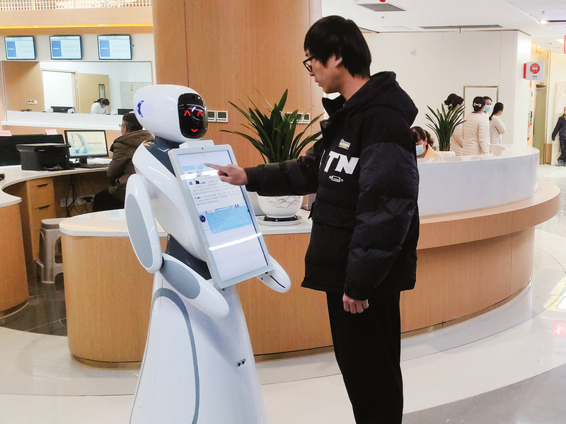 工程师吕蒙介绍,这款机器人不仅具备触摸屏幕、主动迎宾、智能问诊、预检分诊等基本功能,还拥有介绍医生、医院、科室及其位置、人脸识别、无轨导航、自主避障等高级功能。更为先进的是,机器人还可以在后台不断增加专业知识库,根据答案内容配备相应的屏幕展示,从而不断提升服务质量和效率,为患者就诊带来更多“智趣”。