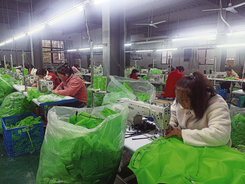 洛南县恒耀得福服饰玩具有限公司属于出口创汇企业,主要生产充气玩具、毛绒玩具,产品全部销往俄罗斯、美国、意大利、新加坡等国,现有在岗工人130人,每人年收入平均2万元。图为12月10日,工人正在加工充气玩具配件。 (本报通讯员 毕波波 摄)
