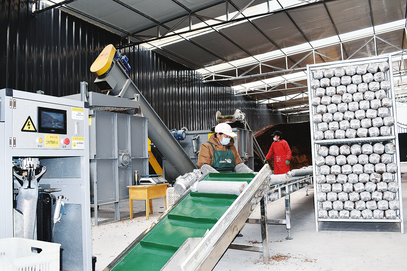 12月11日,在镇安县米粮镇界河村帮扶工厂食用菌生产车间里,工人正在食用菌棒生产作业。在驻村帮扶部门的支持下,界河村建成了食用菌全智能化生产线,带动150人就业,村集体经济年收入8万多元。(本报记者 马泽平 摄)