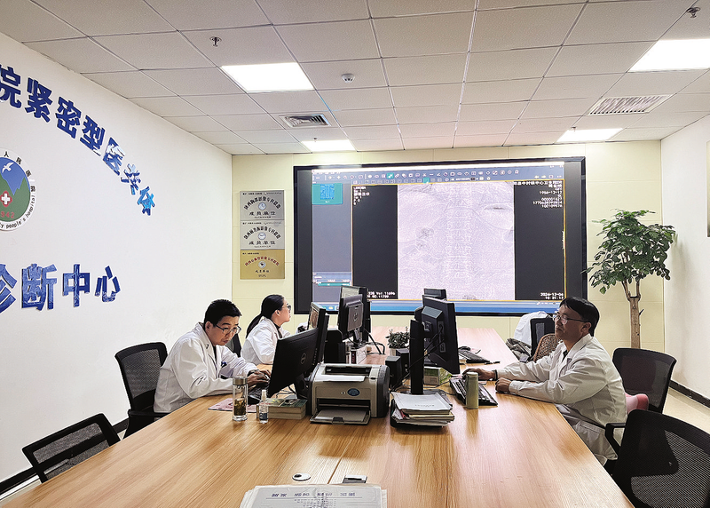 县医院诊断中心内,影像医生正在对传来影像进行诊断。