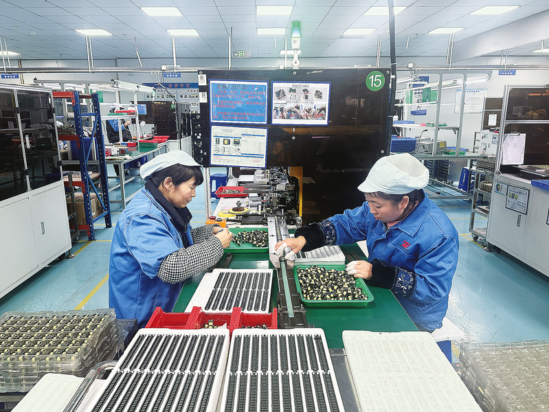 12月12日,在山阳县工业园区陕西迈思普电气有限公司厂房内,工人正忙碌地组装着5G电源适配器。该公司是从东莞引进的劳动密集型电子信息产业,现已建成高新变压器、数据线、DC线材自动化生产线50条。2024年1月至10月,实现工业产值2.3亿元,带动就业800多人。 (本报记者 杨 萌 摄)