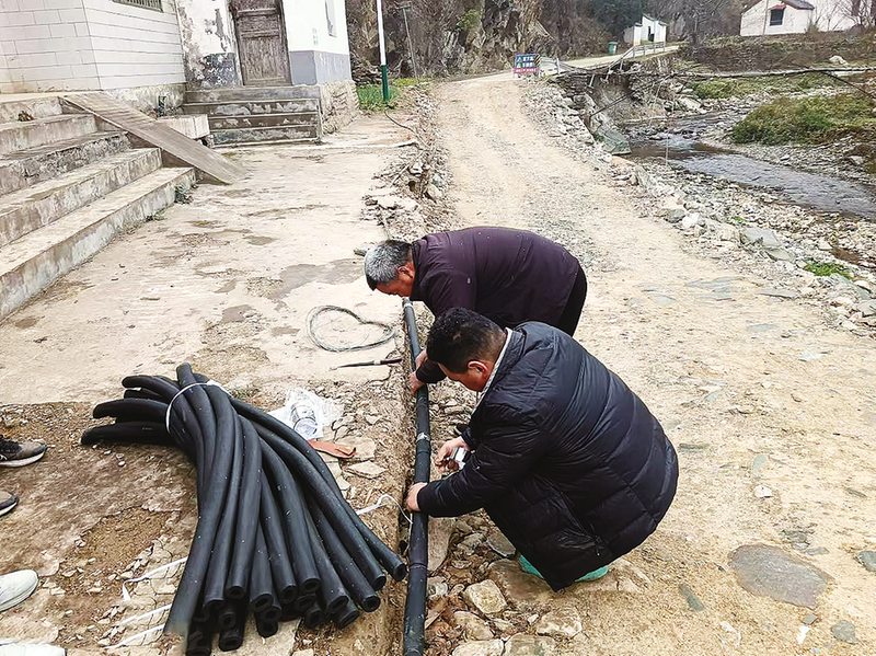 近日,丹凤县竹林关镇开展冬季农村供水保障排查,对水源地 环境卫生进行集中整治、对损坏设备进行维修、对裸露水管及龙头 由镇政府统一采购保温棉进行保护,确保居民用上“放心水”。 (本报通讯员 雷明欣 摄)