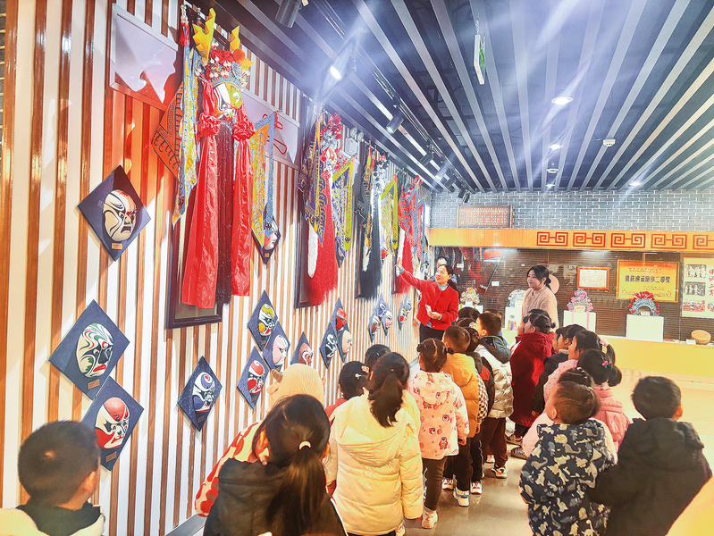 12月12日,山阳县第一幼儿园中一班小朋友来到县非物质文化遗产陈列馆近距离感受非遗文化,了解家乡民俗文化。据了解,山阳县第一幼儿园注重传承和发扬山阳优秀的地域文化,结合授课实际,开展了系列活动,旨在帮助幼儿了解家乡文化,接受非物质文化遗产熏陶。 (本报见习记者 杨若阳 摄)
