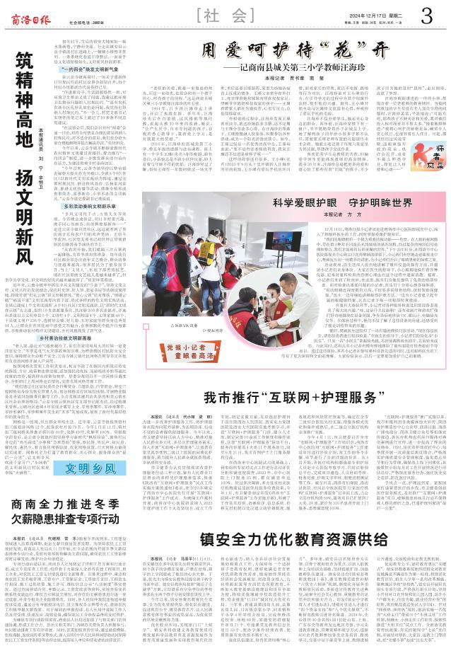 市卫健委为认真贯彻落实改善护理服务行动三年计划,聚焦人民群众日益增长的多样化护理服务需求,根据《陕西省“互联网+护理服务”试点工作实施方案的通知》要求,在2023年确定了商洛市中心医院先行开展“互联网+护理服务”工作试点。为确保工作顺利开展,商洛市中心医院将其纳入2023年度护理工作十大攻坚项目,成立工作专班,制定实施方案,先后选派护理骨干前往陕西省人民医院、西安电力集团医院及西安大兴医院实地考察学习,开设“互联网+护理服务”门诊,建立人才库,制定完善10余项工作制度和操作流程,注册“互联网+护理服务”信息平台,服务内容覆盖4大类11个服务项目,同年9月21日,我市首例护士上门服务顺利完成。