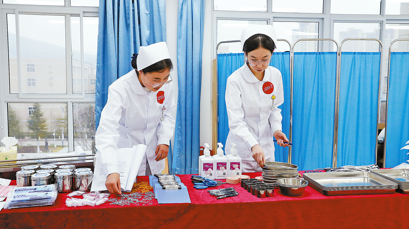 参赛选手在做准备12月11日至14日,2024“一带一路”暨金砖国家技能发展与技术创新大赛首届护理综合技术虚实结合创新应用赛项在商洛职业技术学院举行。