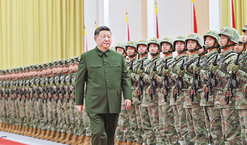 十二月二十日,中共中央总书记、国家主席、 中央军委主席习近平视察中国人民解放军驻澳 门部队,代表党中央和中央军委向驻澳门部队全 体官兵致以诚挚问候。这是习近平检阅驻澳门 部队。 (新华社记者李 刚 摄)新华社澳门12月20日电 (记者 梅常伟)出席庆祝澳门回归祖国25周年活动的中共中央总书记、国家主席、中央军委主席习近平,20日视察中国人民解放军驻澳门部队,代表党中央和中央军委向驻澳门部队全体官兵致以诚挚问候。他强调,要深入贯彻新时代强军思想,贯彻新时代军事战略方针,全面加强部队建设,全面提高履行防务能力,发挥好定海神针作用,为继续开创具有澳门特色的“一国两制”实践新局面作出更大贡献。