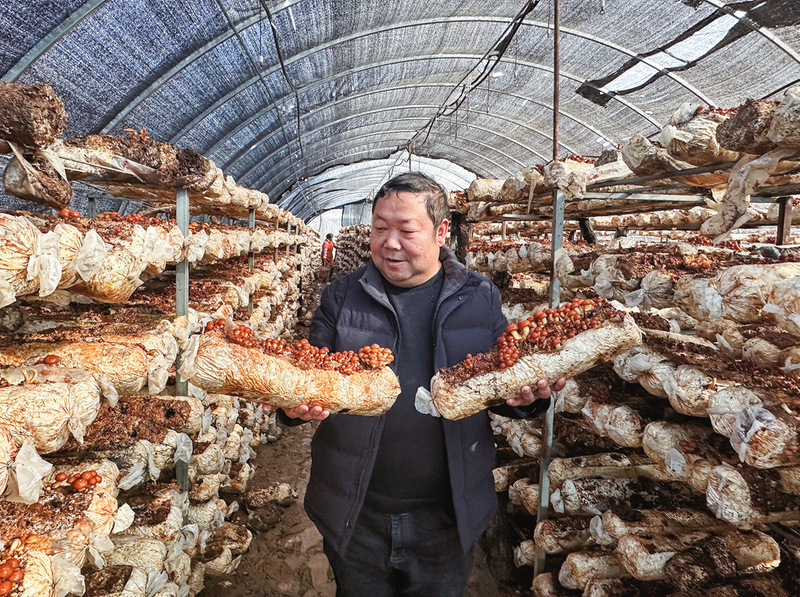 12月16日,工人在商州区北宽坪镇滑子菇基地采收滑子菇。该基地现有大棚35个,今年年产滑子菇50万公斤,产值500万元,带动周边70户群众增收致富,户均年增收8000元。 (本报记者 胡 蝶 摄)